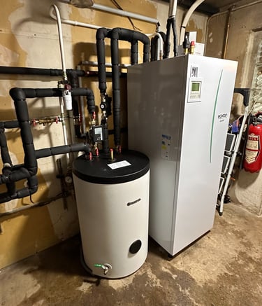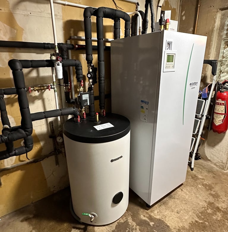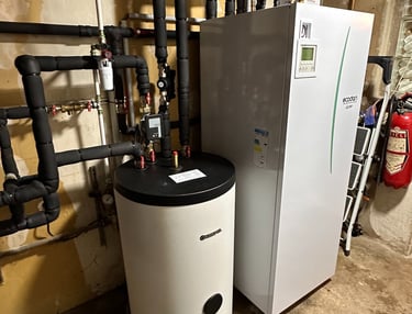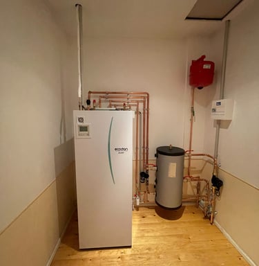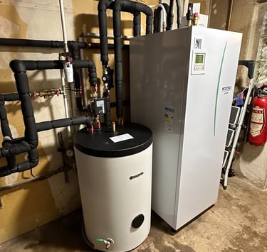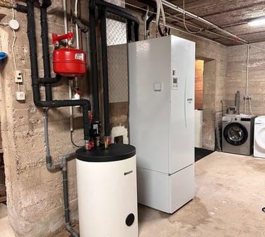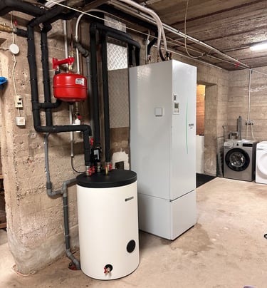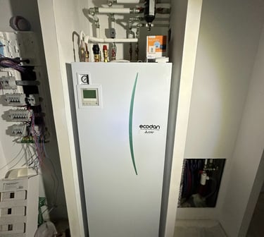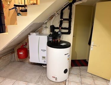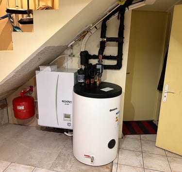 Installation d'une pompes à chaleur air/eau duo 200L pour le chauffage central et la production d'eau chaude sanitaire.